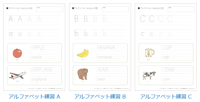 英単語の前にアルファベットを練習したい場合にも、ちびむすドリルは活用できます。