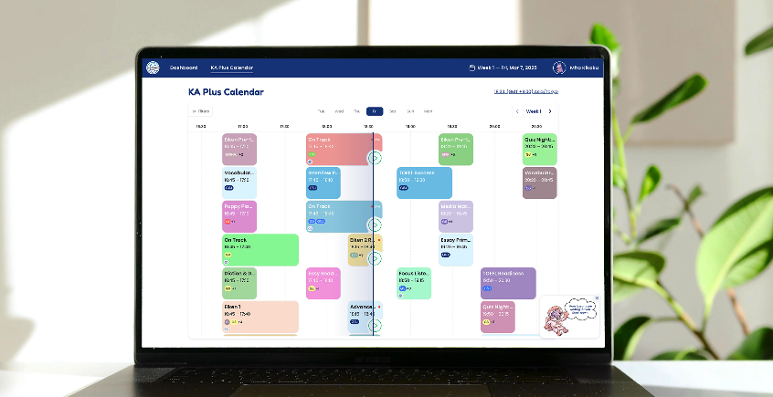 KA Plus!は、月額6,600円(税込)で利用できるサブスクリプション型のオンライン授業サービスです。週5日、毎日オンラインでライブ授業に参加でき、通常の対面授業に加えて英語に触れる機会を大幅に増やせます。