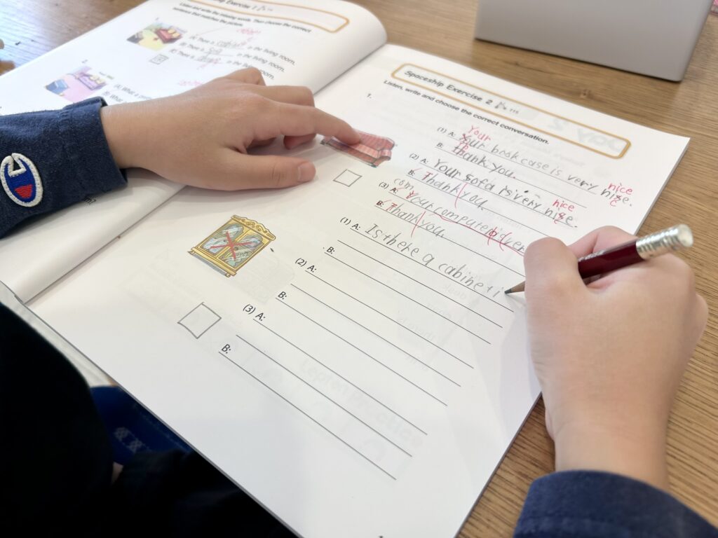 英語が初めての場合でも、音声中心の取り組みで、少しずつ音と文字のつながりを身に付けています。