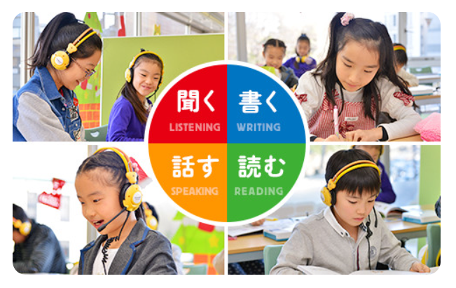 教室では「聞く」「話す」「読む」「書く」の英語4技能をバランス良く習得できるカリキュラムが組まれています。