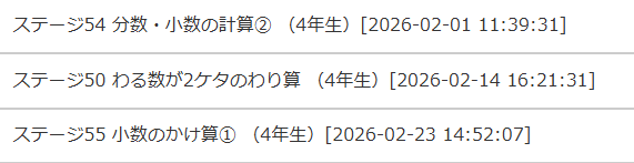 でも、この4か月目で、3年生までの問題を45ステージを終えて、高学年のステージに進むことができました