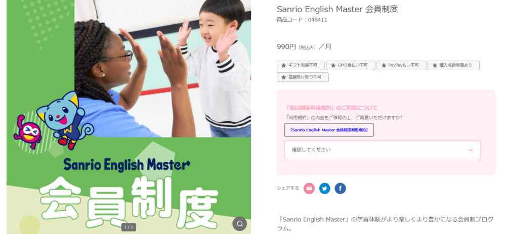 サンリオイングリッシュマスターには、月額990円で会員制度があります。