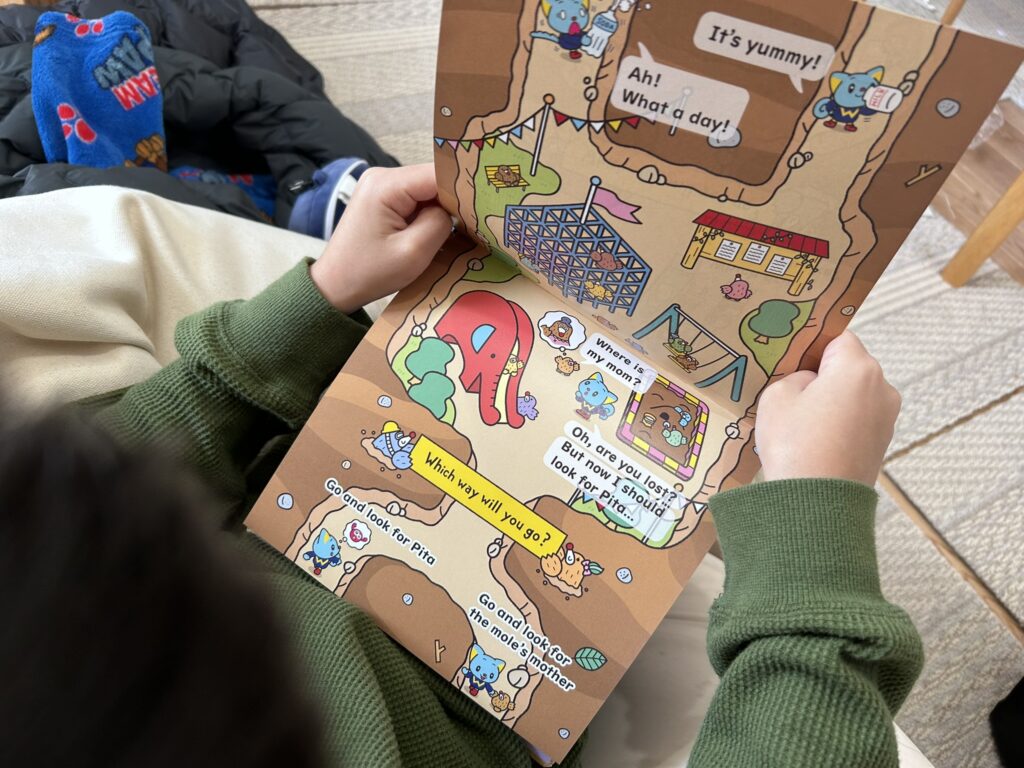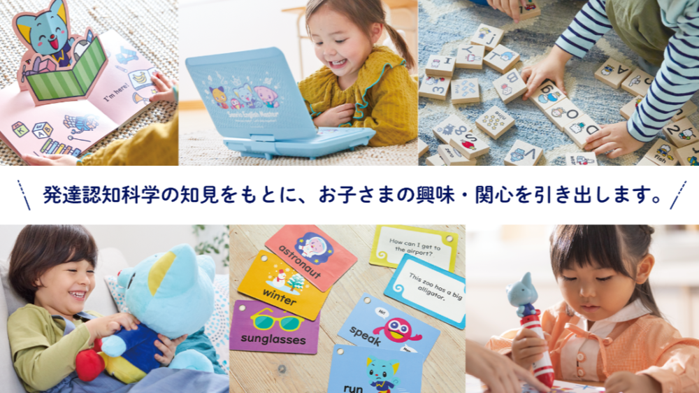 その他に、絵本や単語カード、タッチペンでのやりとりを通して、子どもが自然に英語に触れられる流れが作られています。